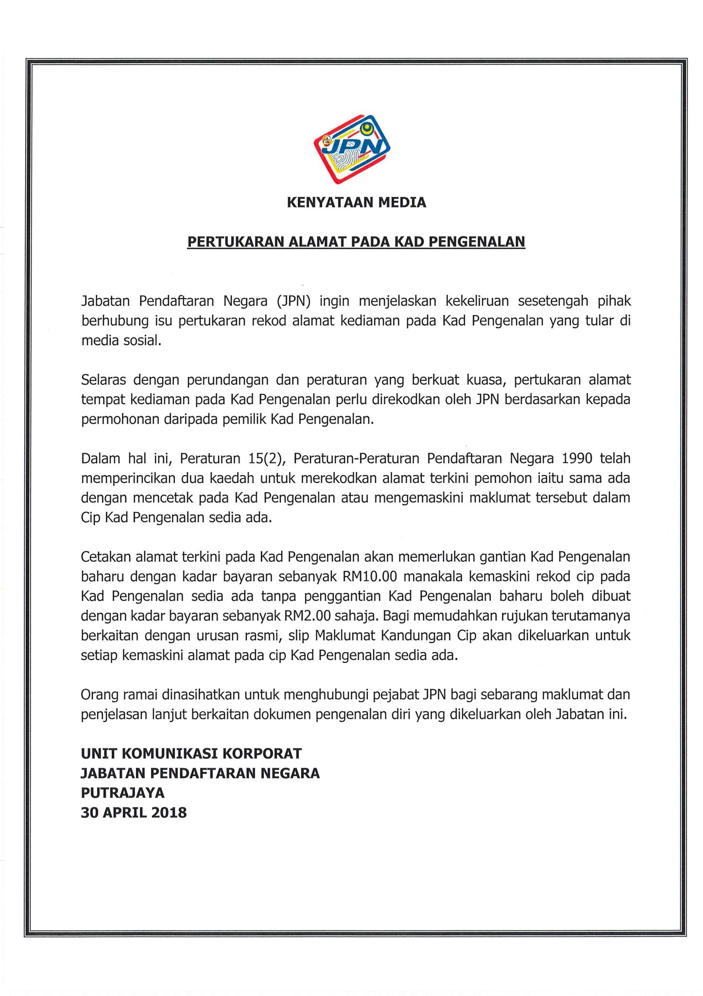 Majlis anugerah perkhidmatan cemerlang jabatan pendaftaran negara tahun 2018. If you are visiting our english version, and want to see definitions of jabatan pendaftaran negara malaysia in other languages, please click the language menu on the right bottom. To view pdf files click to download acrobat reader. Jabatan pendaftaran negara how you will train those affected by the new system to implement it? Jabatan pendaftaran negara jpn bandar indera mahkota.