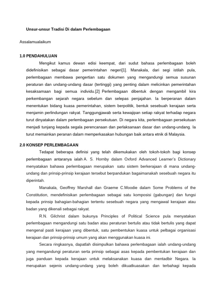 Related : Unsur Tradisi Dalam Perlembagaan Malaysia - Suruhanjaya reid sepatutnya memasukkan satu perkara dalam perlembagaan persekutuan yang..